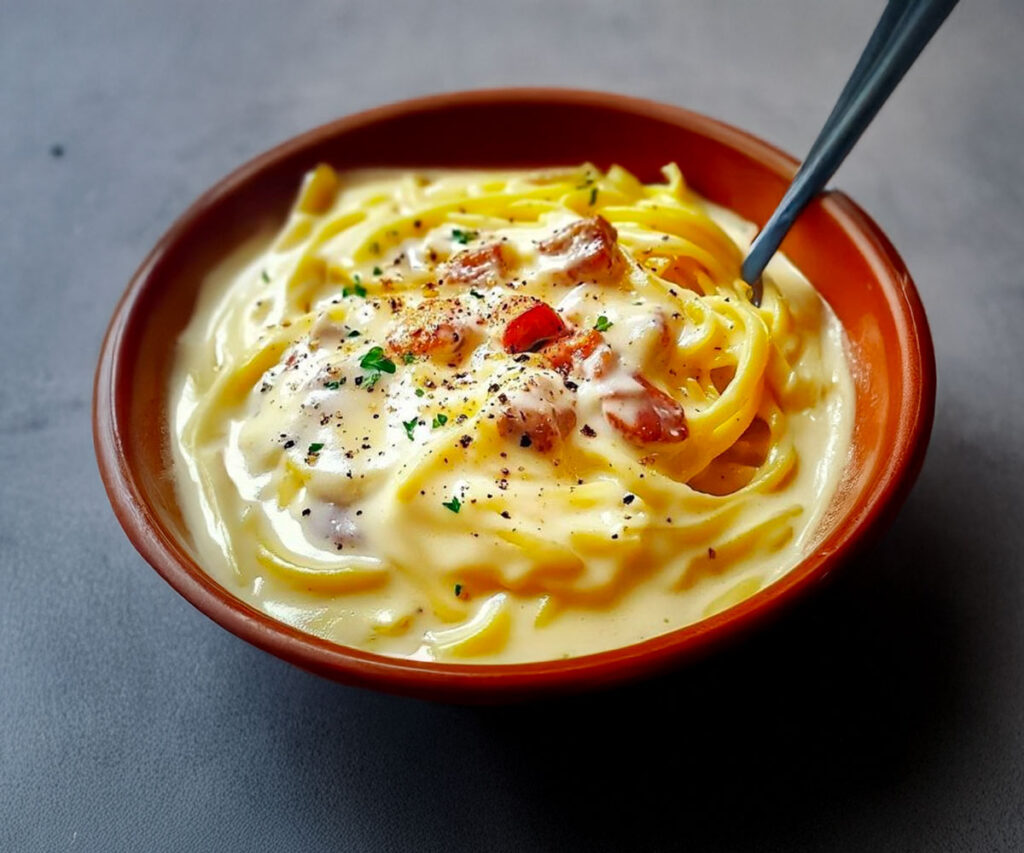 Aj textúry sú dokonalé: cestoviny, ktoré sa vám rozplývajú v ústach, krémová omáčka, ktorá ich krásne obaľuje, jemné kúsky kuracieho mäsa a kúsky slaniny, ktoré dodávajú nádych chrumkavosti… Každé sústo je skutočnou lahôdkou. A s posypaním čerstvou petržlenovou vňaťou alebo štipkou mletého korenia sa to všetko stane ešte chutnejším.