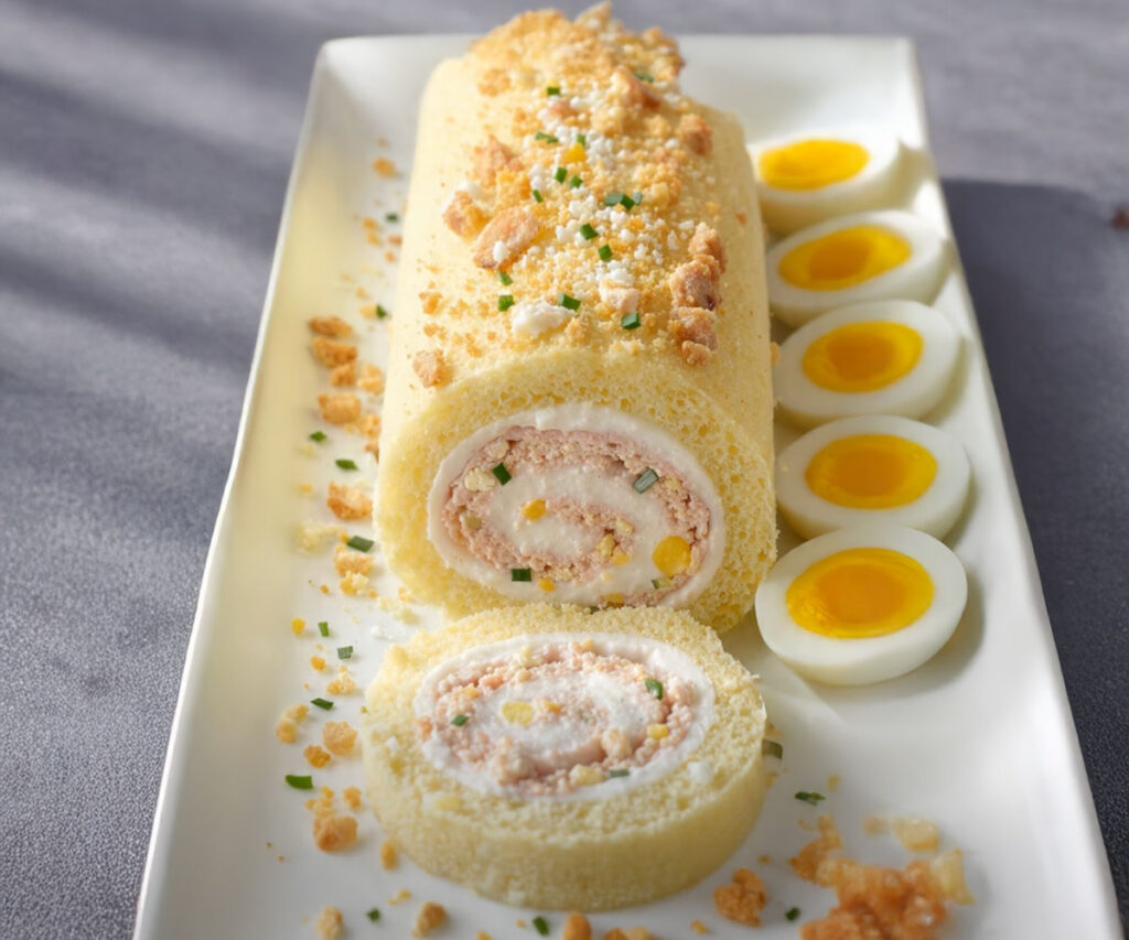 Vďaka vzhľadu mini sushi rolky a známym chuťam si tento slaný rolád určite zamiluje každého. Kombinuje krémovosť natvrdo uvarených vajec, mäkkosť nakrájaného chleba a jemnú chuť tuniaka, ktorú umocňuje štipka ľahkej majonézy a štipka pažítky. Ľahko sa krája na lahodné kúsky a rýchlo sa stane hviezdou koktailových večierkov, vianočných bufetov alebo detských slaných pochutín.