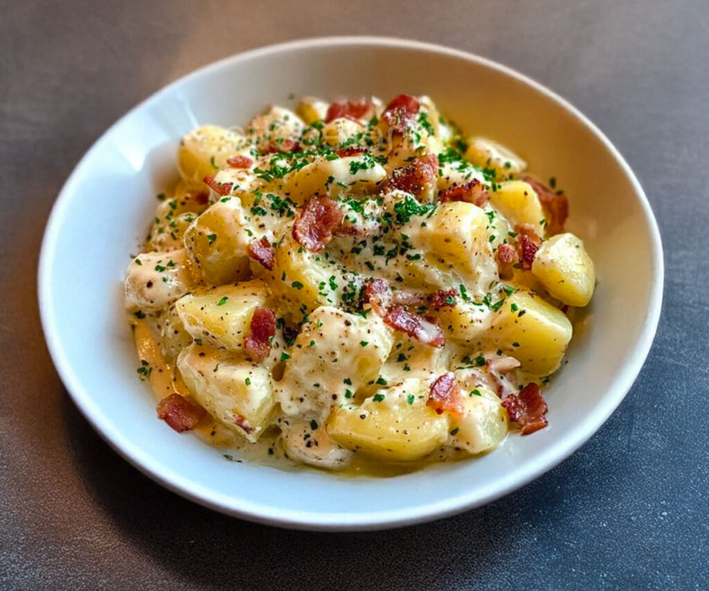 Toto jedlo má všetko, čo potrebujete: rozplývajúce sa zemiaky , chrumkavú slaninu , jemnú smotanovú omáčku a pre tých, ktorí ho majú radi, aj vaječný žĺtok, ktorý všetko jemne spojí. Je to skvelá alternatíva k cestovinám, ktorá vám umožňuje použiť ingrediencie, ktoré už často máte v kuchyni, bez toho, aby ste obetovali chuť.