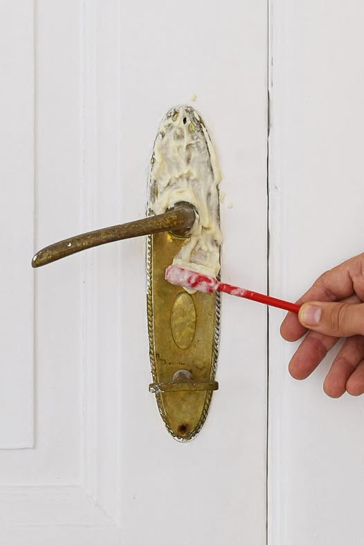 2️⃣ Pastu naneste na mosadz pomocou mäkkej handričky alebo špongie. Jemne vtierajte krúživými pohybmi .