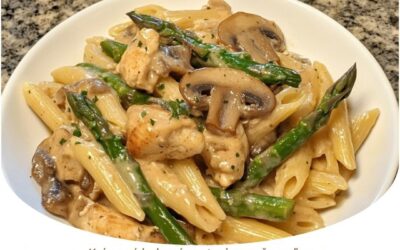 Krémové kuracie penne s hubami a špargľou 🍽️✨ Ak máte chuť na chutné a zároveň výživné cestoviny, krémové kuracie penne s hubami…