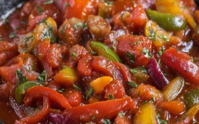 Rozplývajúco jemné papriky vyprážané na panvici s paradajkami