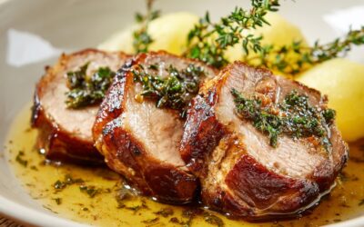 Pečené bravčové mäso s cesnakom a tymianom