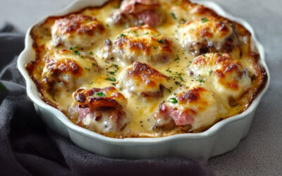Plnené huby so šunkou a syrom Comté – krémový a slaný gratin