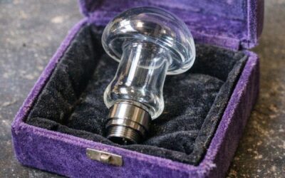 Našiel som túto sklenenú hubu v zamatovo vystlanej krabici na dražbe. Na spodnej strane má kovový konektor. Vyzerá ako súčasť stroja?