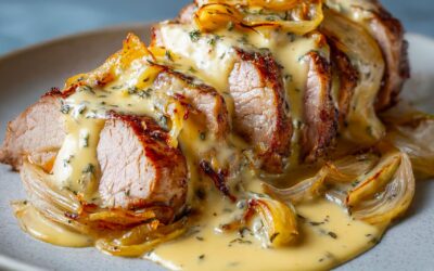 Bravčová panenka s karamelizovanou cibuľou a roztaveným syrom Reblochon