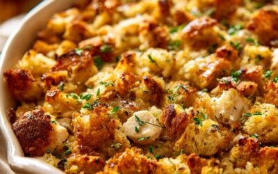 Kuracia plnka v kastróle je chutné a chutné jedlo, ktoré kombinuje jemné kuracie mäso, slanú plnku a krémovú omáčku, dokonale…