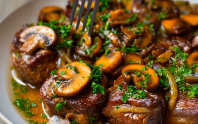 Bravčové líčka s hubami a bielym vínom: jemné, pomaly varené jedlo