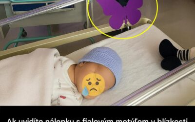Nálepka s fialovým motýľom v blízkosti novorodenca má srdcervúci význam.