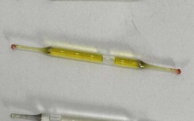Čo je toto? Našli sme to pod umývadlom v kúpeľni počas rekonštrukcie – malé sklenené trubice, dlhé 5 cm, naplnené tekutinou. Máte nejaké nápady?