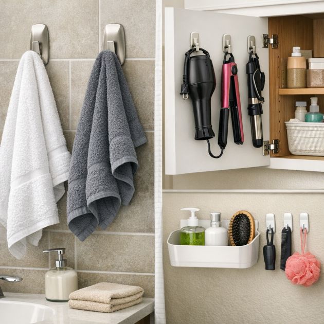 Kúpeľne majú často obmedzený úložný priestor, ale háky na zavesenie vecí môžu pomôcť maximalizovať dostupný priestor. Na zavesenie uterákov použite veľké, vodeodolné háky v blízkosti sprchy alebo umývadla, aby zostali suché a ľahko dostupné.