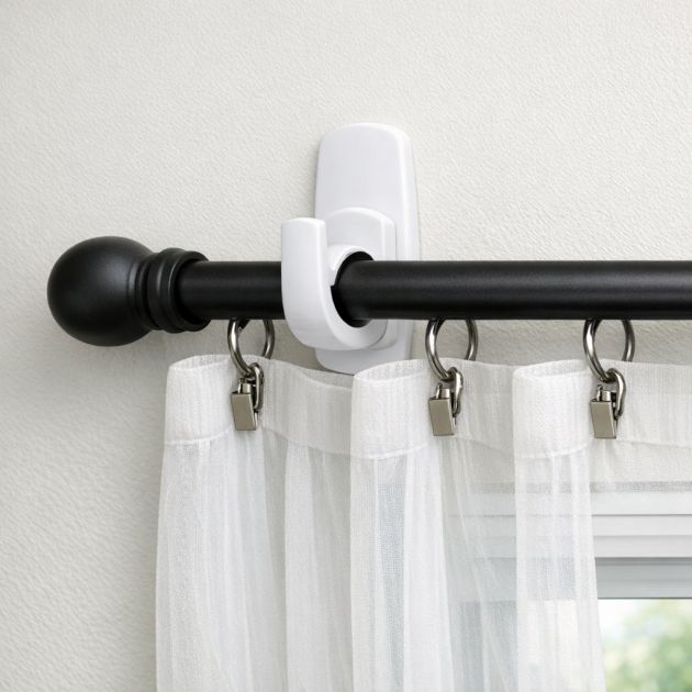 Umiestnite háky do požadovanej výšky a zasuňte tyč na miesto. Táto metóda, ktorá je priateľská k nájomcovi, umožňuje jednoduché zmeny a úpravy bez poškodenia stien, čím ponúka súkromie aj štýl.