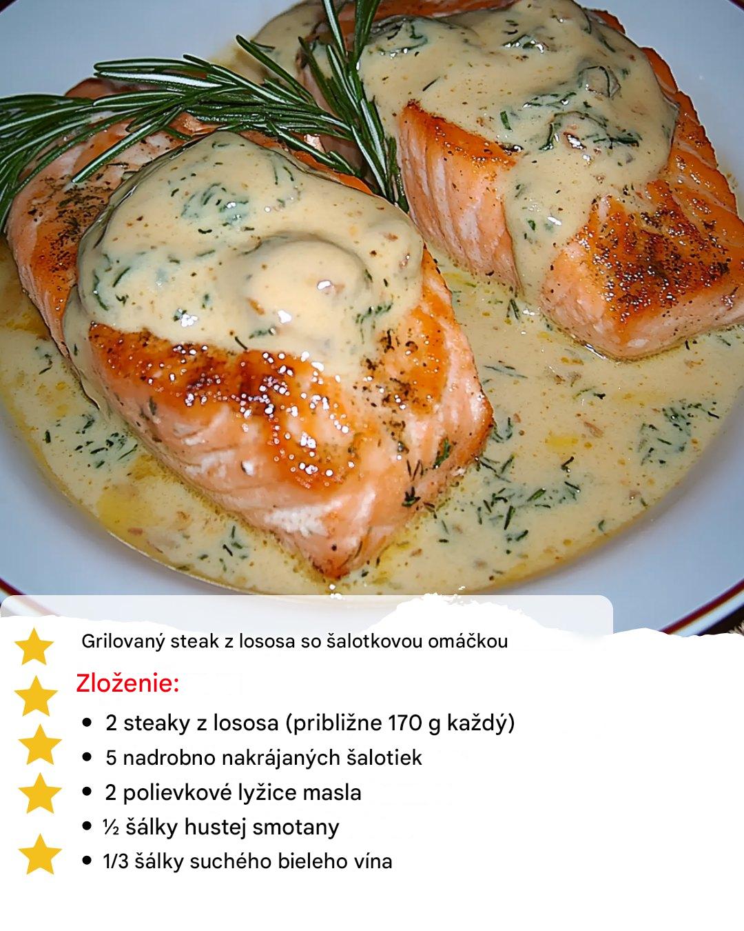 Grilovaný filet z lososa s krémovou omáčkou zo šalotky a bieleho vína je elegantné a rafinované jedlo, ideálne na lahodnú a ľahko pripraviteľnú večeru. Kombinácia jemného lososa a jemnej omáčky zvýrazňuje chuťové poháriky a poteší vaše chuťové poháriky.