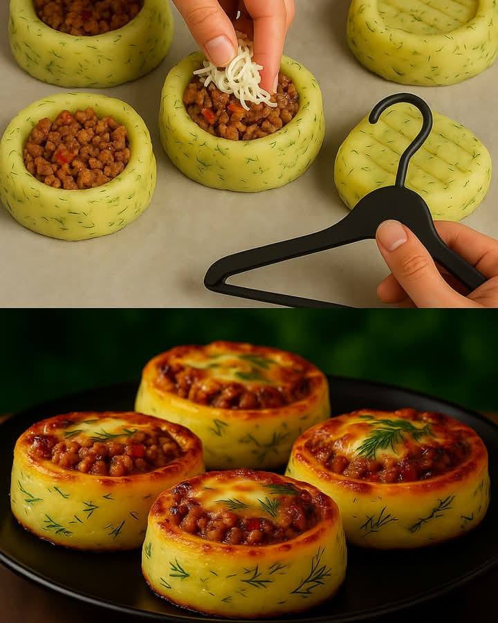 Hniezda z pyré plnené mäsom