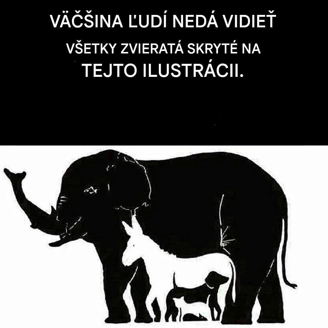 Už nejaký čas koluje obrázok, ktorý prekvapuje aj tých najskúsenejších pozorovateľov. Na prvý pohľad sa zdá, že zobrazuje päť zvierat: slona, osla, psa, mačku a myš. Realita je však zložitejšia: na tejto kresbe sa skrýva trinásť zvierat!