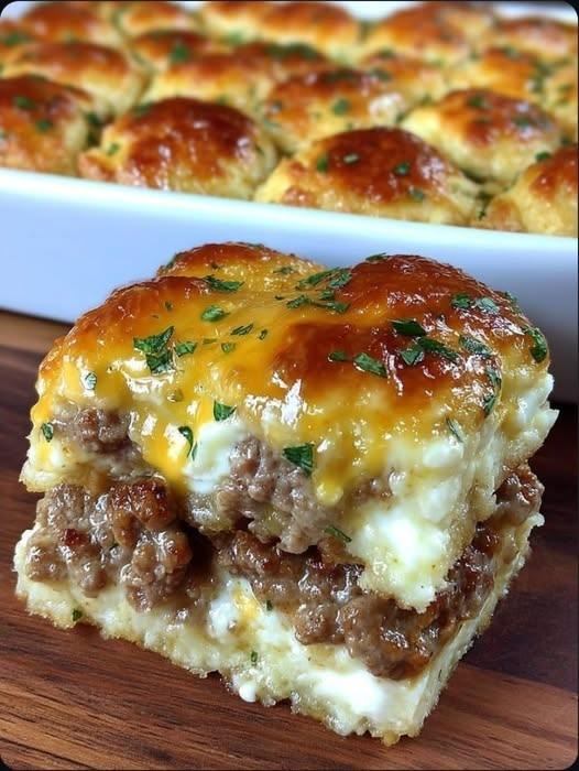 Táto zapekaná klobásová smotanová syrová placka z 3 ingrediencií (nazývaná aj „klobásové štvorce“) je jedlo, ktoré sa pripravuje neuveriteľne jednoducho. Vločkové, maslové polmesiacové cesto drží bohatú a slanú plnku a smotanový syr sa priamo roztopí do klobásových drobeniek, čím vzniká krémové, dokonale ochutené sústo bez akýchkoľvek ďalších korenín. Ideálne na sviatočné brunche alebo nakrájané na malé štvorce ako desiata na zápas, o ktorú sa všetci budú hádať.