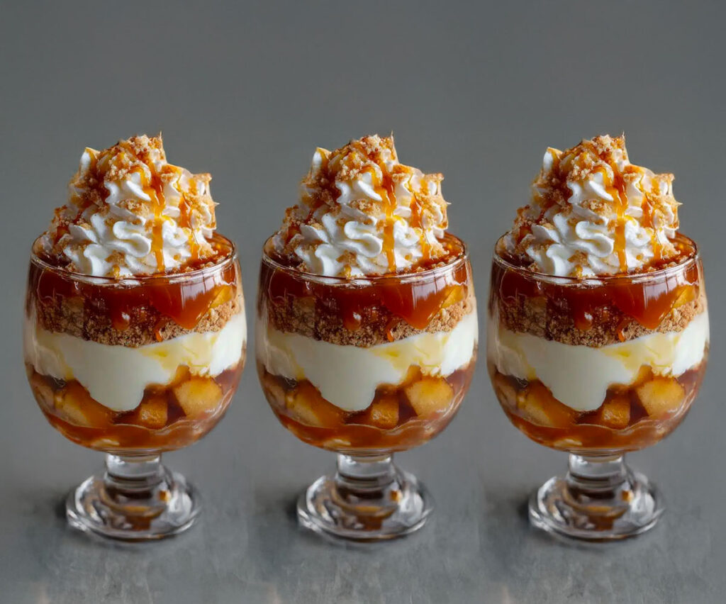 Tento recept je taký výnimočný vďaka dokonalej rovnováhe prvkov: rozplývajúco jemné, mierne kyslasté jablká, jemný slaný karamel a vzdušná domáca šľahačka. Každá lyžička je explóziou sladkosti, v kontraste s chrumkavosťou rozdrobených sušienok na dne pohára.