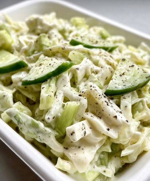 Tento krémový korenený coleslaw s uhorkami a zelerom je osviežujúcou variáciou klasického obľúbeného piknikového jedla. Vďaka chrumkavým čerstvým uhorkám a zeleru má jasnú a žiarivú textúru. Krémový, pikantný dresing – s náznakom čierneho korenia a dijonskej horčice – dokonale dopĺňa chrumkavú zeleninu, vďaka čomu je ideálnou prílohou ku grilovanému mäsu, sendvičom alebo grilovaným jedlám.
