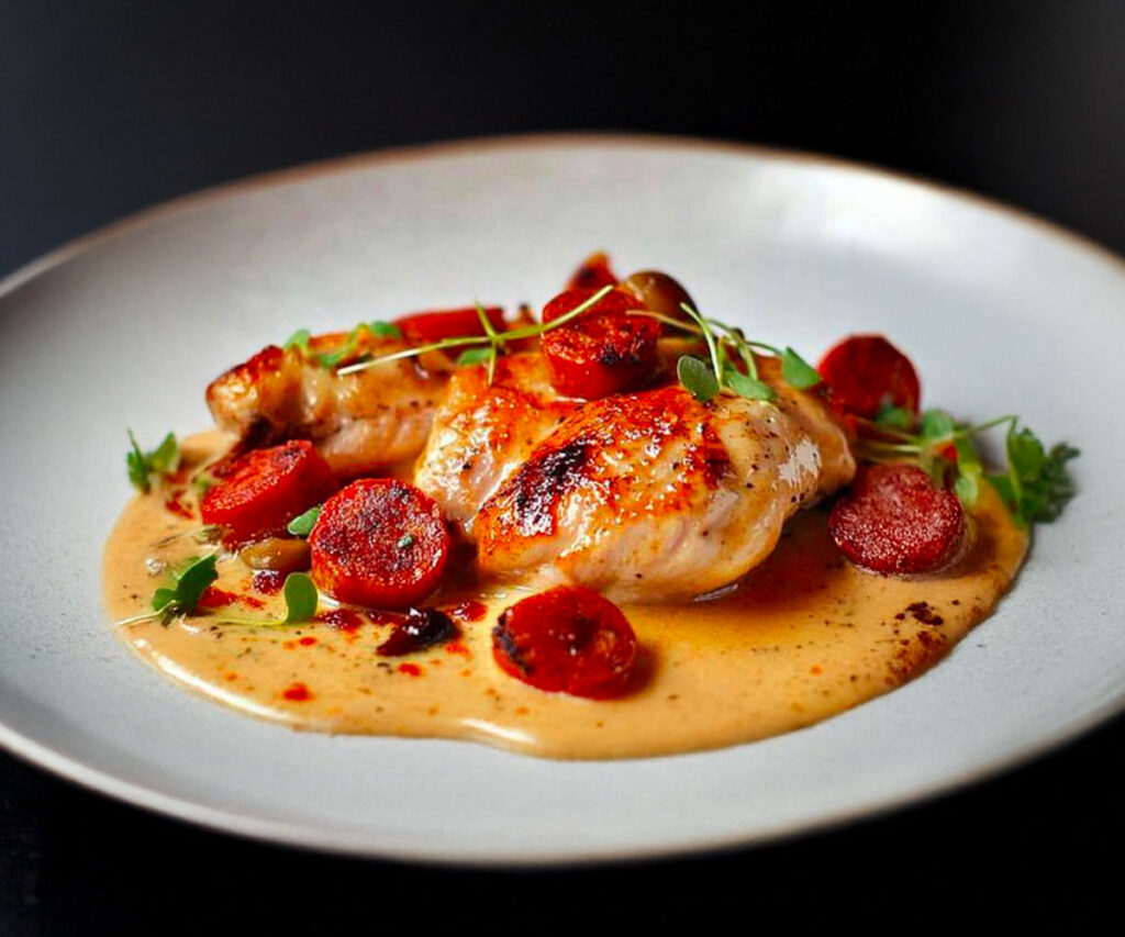 Chorizo so svojou údenou a mierne korenistou chuťou dokáže premeniť aj tie najjednoduchšie jedlá na explóziu chutí. V tomto recepte nehrá len dekoratívnu úlohu: keď sa na panvici mierne roztopí, uvoľní svoju arómu a naplní celú omáčku chuťou. Dômyselný spôsob, ako dodať jedlu hĺbku bez znásobenia ingrediencií.