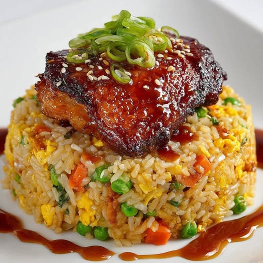 Kuracie stehná s hnedým cukrom a bourbonom na čínskej vyprážanej ryži