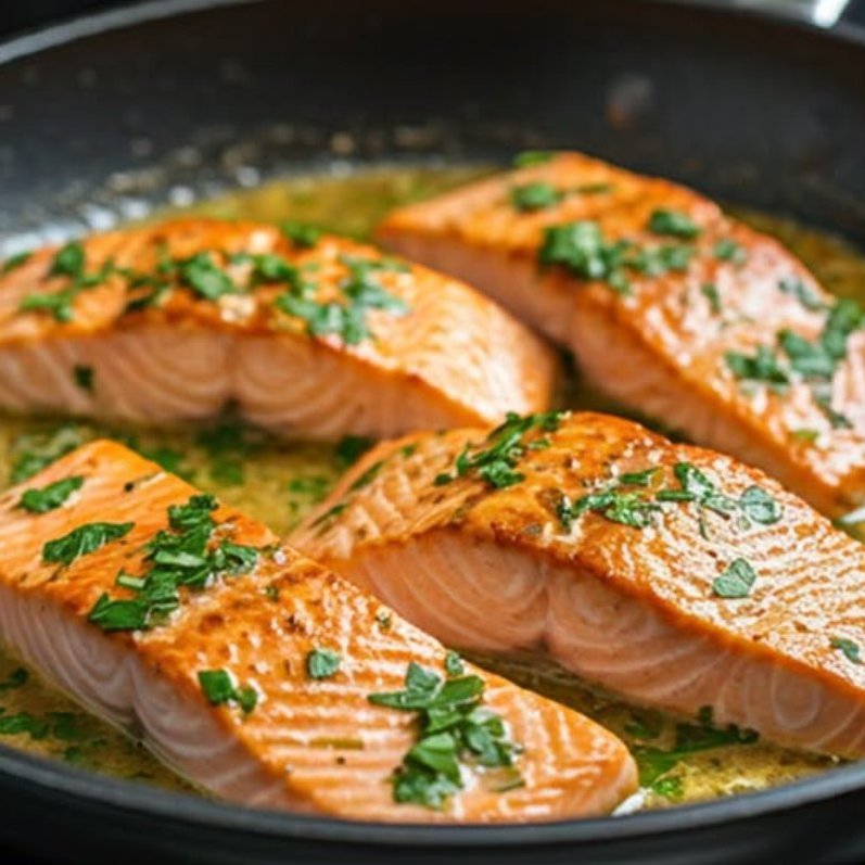 Losos vyprážaný na panvici s omáčkou