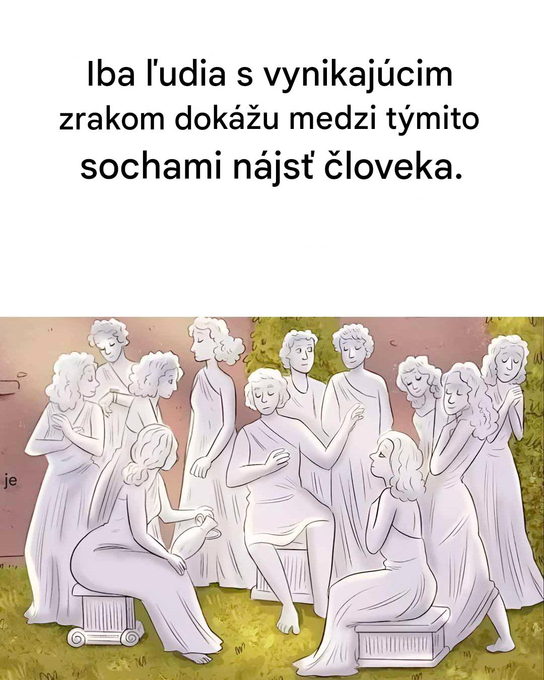 Predstavte si: stojíte pred slávnostnou scénou, takmer zamrznutou v čase. Nehybné sochy, zoradené ako kamenní strážcovia. A predsa niečo nie je v poriadku. Detail, malý, ale odhaľujúci... Mohol by to byť pohľad? Gesto? Niekde v tomto kamennom lese sa skrýva skutočný človek. Je to len na vás: máte dostatočne bystré oko na to, aby ste ho spozorovali za menej ako 9 sekúnd?