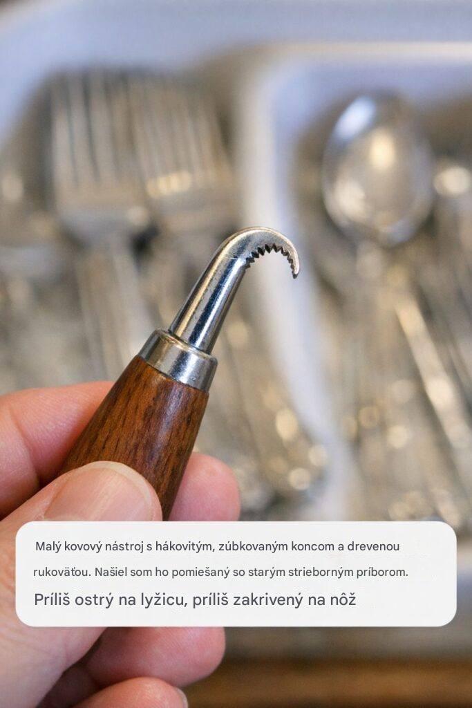 Vo svete starožitného kuchynského riadu možno naraziť na mnoho zaujímavých a tajomných nástrojov, z ktorých každý má svoju vlastnú jedinečnú históriu a účel. Medzi týmito kuriozitami môžete nájsť malý kovový nástroj s hákovitým, zúbkovaným koncom a drevenou rukoväťou, ukrytý medzi starým strieborným príborom. Na prvý pohľad nemusí byť jeho funkcia okamžite zrejmá, pretože nezodpovedá typickým tvarom a hranám bežného riadu, ako sú lyžice, vidličky alebo nože.