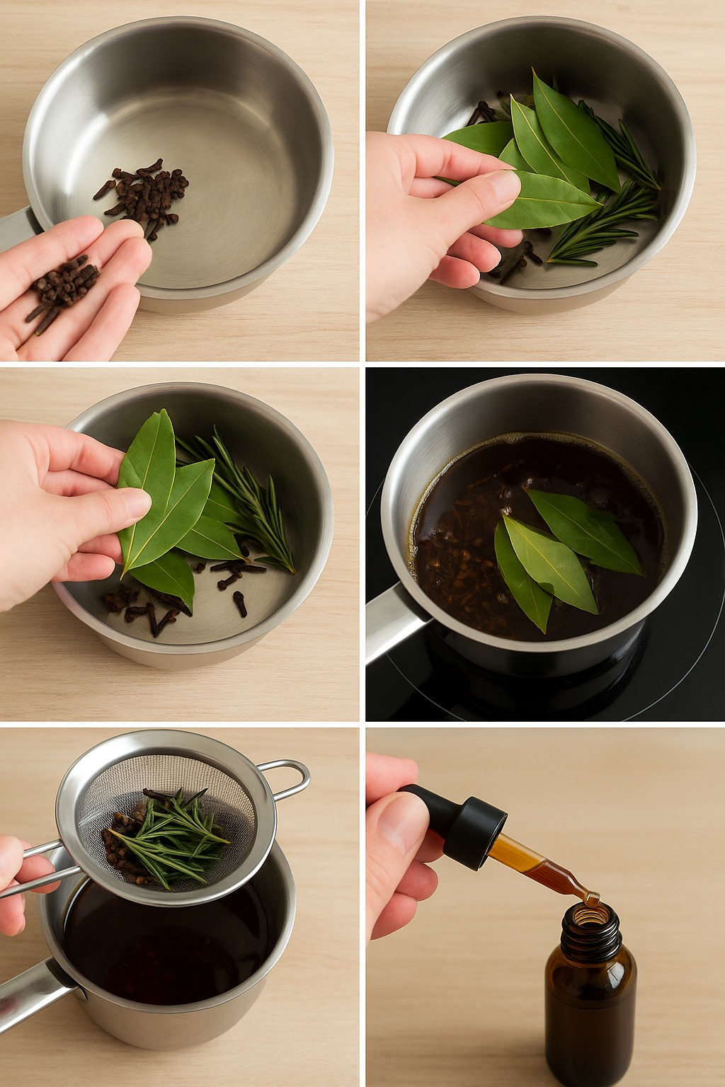Potom pridajte päť bobkových listov. Bobkové listy nie sú len aromatické bylinky; sú tiež bohaté na esenciálne oleje, ktoré sú veľmi prospešné pre pokožku hlavy. Obsahujú živiny, ako je mangán a železo, ktoré sú nevyhnutné pre podporu zdravého rastu vlasov a udržanie zdravia pokožky hlavy.