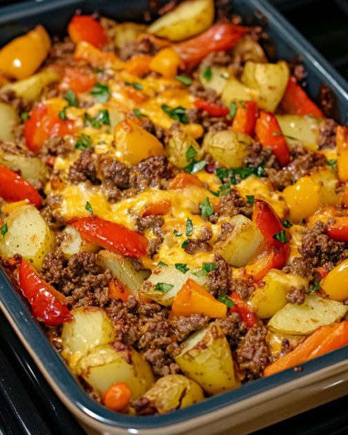 Tento juhozápadný hovädzí a paprikový zápekaný pokrm je lahodnou fúziou výrazných chutí a upokojujúcich textúr, ideálnou pre tých, ktorí si radi pochutnávajú na výdatnom jedle s nádychom korenia. Toto jedlo, ktoré pochádza z pulzujúcich kulinárskych tradícií amerického juhozápadu, kombinuje pikantnú bohatosť mletého hovädzieho mäsa s farebnou zmesou paprík a lahodným sústom zemiakov. Je to všestranné jedlo, ktoré si môžete vychutnať ako rodinnú večeru alebo ako obľúbený spoločný pokrm, a ktoré ponúka chuť juhozápadu priamo z rúry.