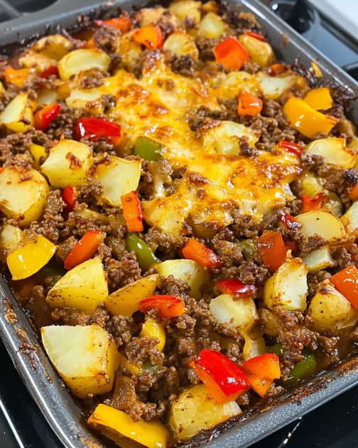 Tento syrový hovädzí a zemiakový kastról je upokojujúce jedlo, ktoré pripomína rodinné stretnutia a nedeľné večere v srdci Stredozápadu. Je to recept, ktorý sa odovzdával z generácie na generáciu, pričom každá z nich tomuto výdatnému jedlu dodávala svoj vlastný šmrnc. Kombinácia mletého hovädzieho mäsa, jemných zemiakov a žiarivých paprík, to všetko posypané zlatou vrstvou syra, vytvára jedlo, ktoré je zároveň uspokojujúce aj nostalgické. Tento kastról, ideálny na nakŕmenie davu alebo na vychutnanie si ako zvyšok jedla, je dôkazom tepla a jednoduchosti tradičnej stredozápadnej kuchyne.