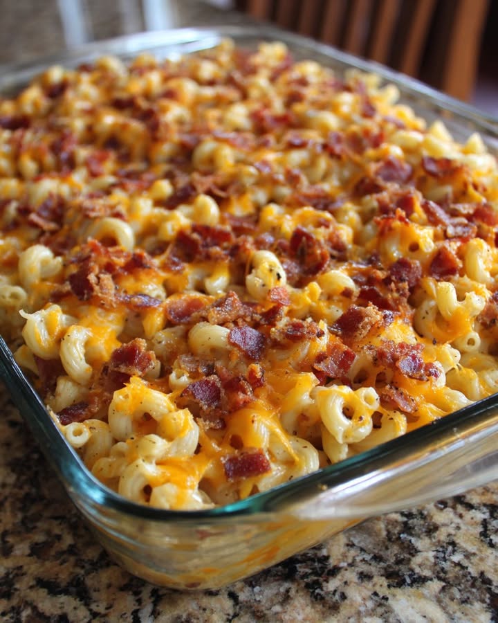 Makaróny so syrom a slaninou pečené v rúre sú upokojujúcim jedlom, ktoré zahreje telo aj dušu. Toto klasické obľúbené jedlo Stredozápadu pripomína jednoduchšie časy, keď sa rodiny stretávali okolo farmárskeho stola, aby si vyrozprávali príbehy a zasmiali sa. Pridanie slaniny dodáva tradičnému receptu údený nádych, rovnako ako starý komín starého otca v chladný jesenný deň. Toto jedlo je ideálne pre tých, ktorí chcú znovu vytvoriť upokojujúcu chuť domova, kde nám bohatý, lepkavý syr a chrumkavá slanina pripomínajú stretnutia s blízkymi.