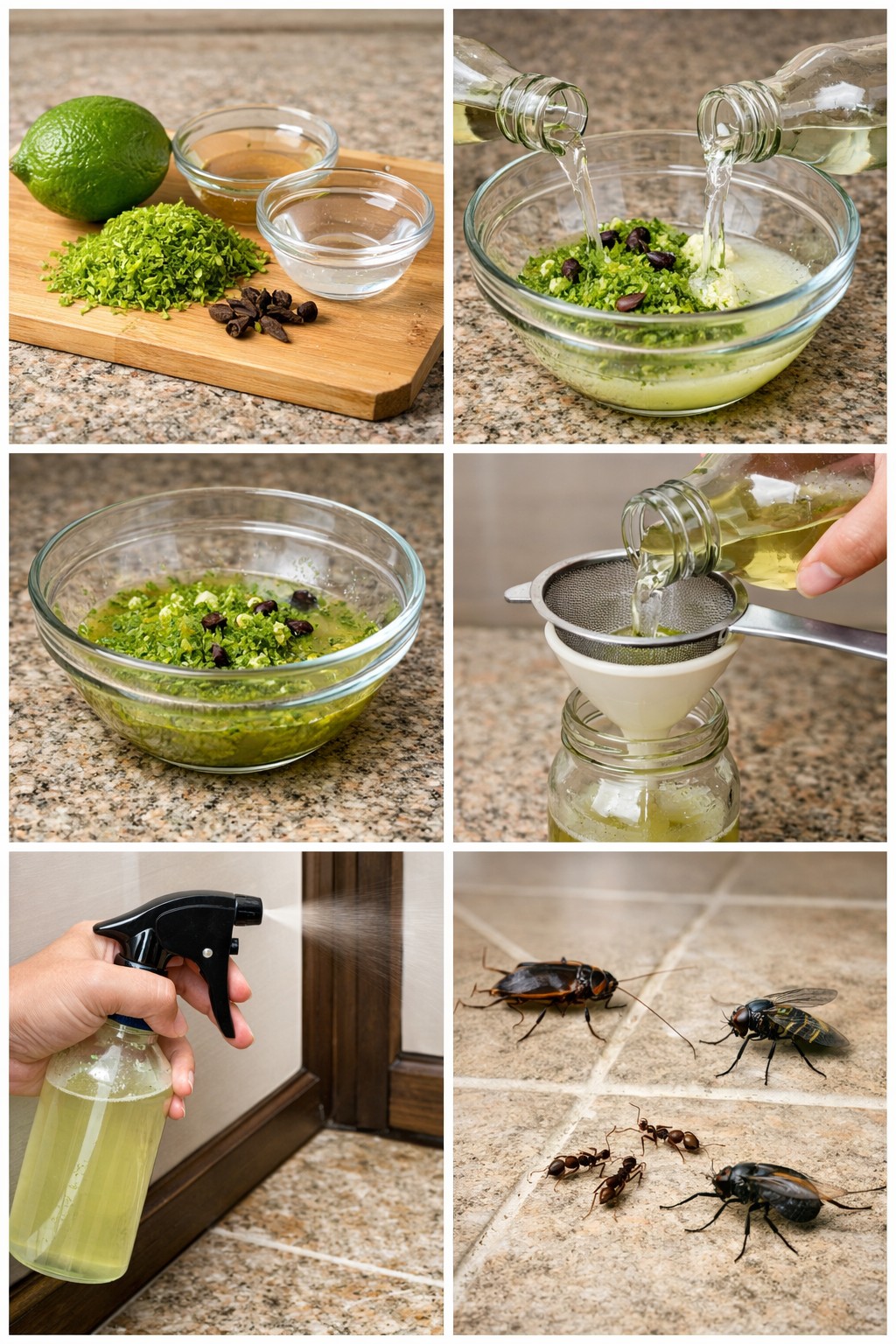 V posledných rokoch sa domáce prostriedky na riešenie problémov v domácnosti stali veľmi populárnymi a existuje jeden, ktorý odpudzuje muchy, šváby a mravce od vášho domu. Budete potrebovať niekoľko ingrediencií: limetku, pol pohára bieleho octu, 5 klinčekov a dve polievkové lyžice liehu.