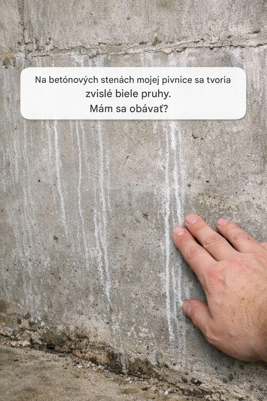 Zvislé biele pruhy, ktoré vidíte na betónových stenách suterénu, sú s najväčšou pravdepodobnosťou výkvety. Výkvety sú kryštalické usadeniny solí, ktoré sa môžu tvoriť, keď je na betóne alebo v ňom prítomná voda. Keď sa voda odparuje, zanecháva za sebou tieto soľné usadeniny, čo vedie k bielym pruhom, ktoré pozorujete.