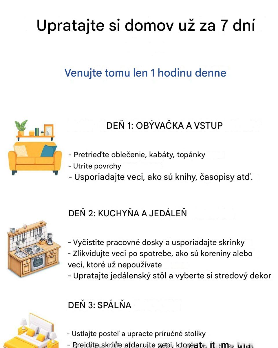 Upratovanie vášho domova sa môže zdať ako náročná úloha, ale so štruktúrovaným plánom sa to dá dosiahnuť už za jeden týždeň, ak tomu budete venovať iba jednu hodinu denne. Táto príručka vás krok za krokom prevedie procesom premeny vášho obytného priestoru na organizovanejšie a pokojnejšie prostredie. Rozdelením úlohy na zvládnuteľné denné ciele sa môžete efektívne vysporiadať s neporiadkom bez toho, aby ste sa cítili zahltení.