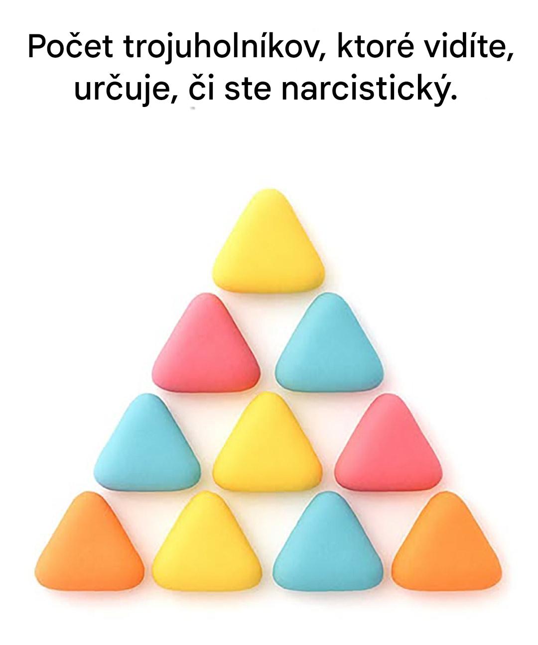 Na prvý pohľad sa obrázok zdá neškodný: niekoľko farebných trojuholníkov naukladaných ako detská geometrická skladačka. Ale keď sa na to pozriete, jednoduchosť sa rozmaže. Niektorí počítajú 9, iní 13, ďalší viac ako 20. Čo keby táto vizuálna skladačka nebola len otázkou matematiky... ale psychológie?