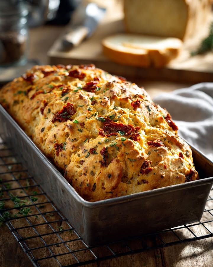 Chlieb so sušenými paradajkami a bylinkami pečený v rúre