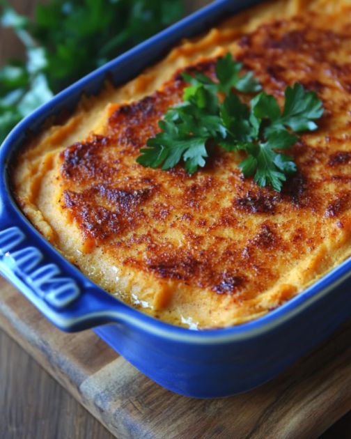Na krémovom zapekanom sladkom zemiaku je niečo skutočne upokojujúce, jedlo, ktoré zdobilo nejeden stôl na Stredozápade, najmä počas obdobia zberu úrody. Tento recept pripomína časy, keď moja stará mama vytiahla svoj modrý keramický pekáč, rodinné dedičstvo, a naplnila dom teplou, lákavou vôňou sladkých zemiakov a korenia. Je to jedlo, ktoré hovorí o domove, o stretnutiach okolo kuchynského stola a o jednoduchých radostiach života. Krémová textúra a jemný náznak muškátového orieška z neho robia perfektný doplnok k akémukoľvek jedlu, najmä keď listy začínajú žltnúť a vzduch sa osvieži.