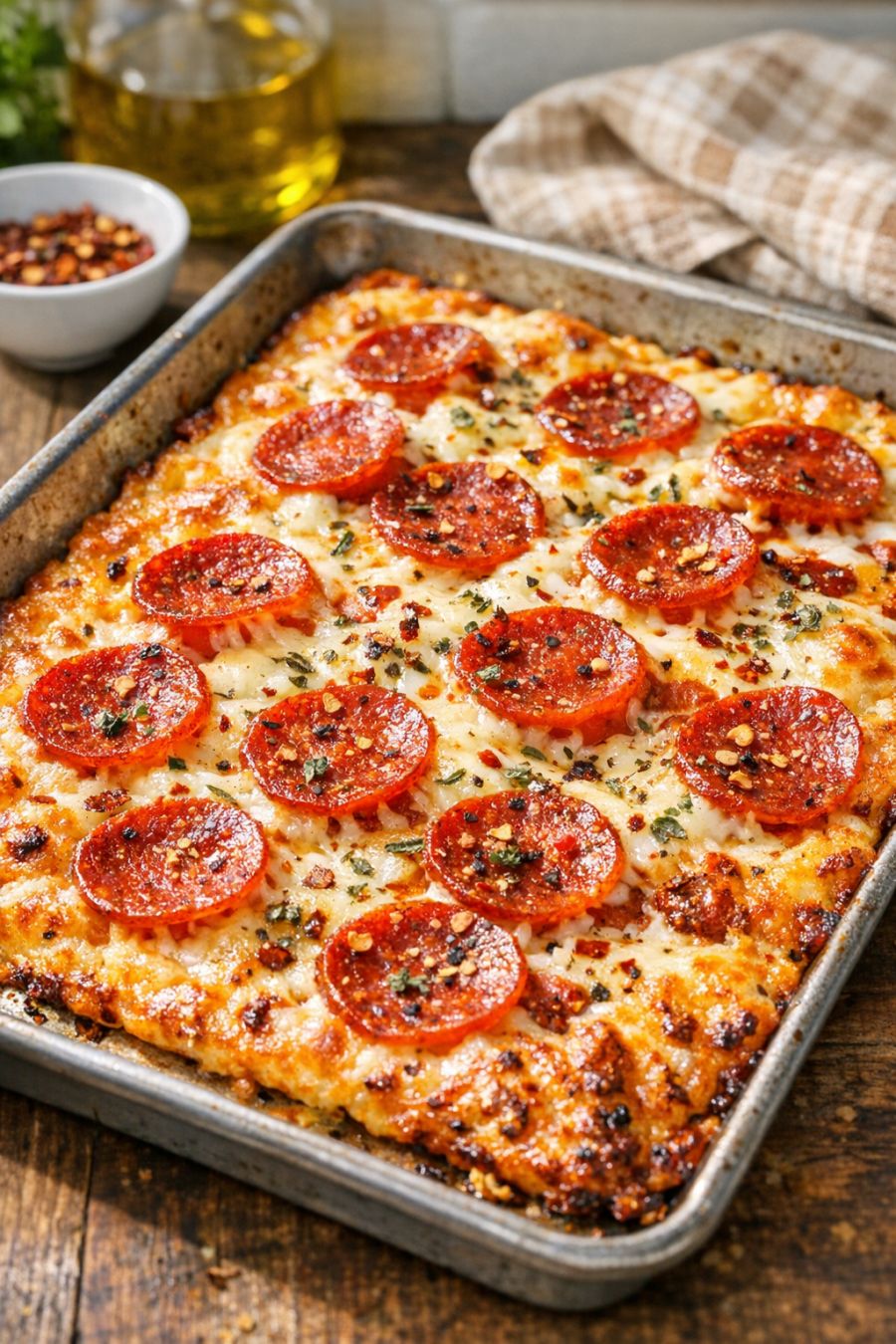 Táto nízkosacharidová mozzarella s pepperoni na plechu je mojou odpoveďou na chuť na pizzu počas týždňa bez múky, starostí alebo poplatkov za doručenie. Požičiava si ducha klasických taliansko-amerických pizzerií – bublinkový syr, chrumkavé pepperoni a množstvo korenia – ale vynecháva tradičnú pšeničnú kôrku v prospech jednoduchého syrovo-vaječného základu, ktorý sa upečie dozlatista a je dostatočne pevný na krájanie. Jedlá ako toto si získali popularitu popri nízkosacharidových a keto diétach, ale v skutočnosti sú len modernou variáciou na myšlienku „pizza kastróla“ alebo pizze bez kôrky, ktorá sa už desaťročia objavuje na amerických stredozápadných večierkoch. Získate všetky známe chute, minimálnu prípravu a jeden plech na umývanie, vďaka čomu je obzvlášť atraktívna na rušné večery alebo neformálne stretnutia, kde každý chce niečo upokojujúce a prispôsobiteľné.