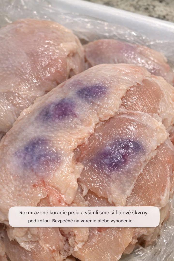 1. Čo sú tie fialové škvrny na rozmrazenom kuracom mäse naozaj