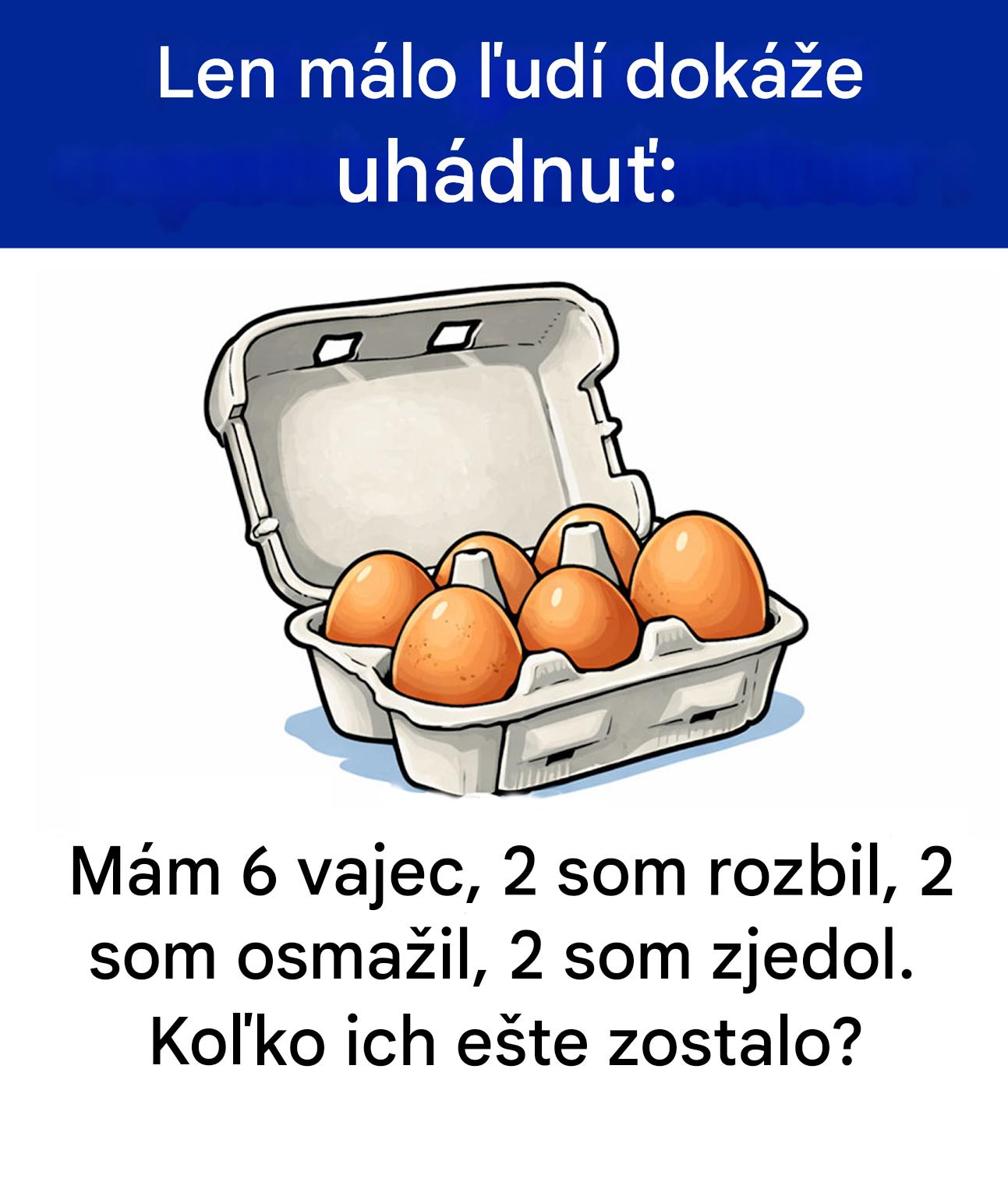„Mám šesť vajec. Rozbil som dve. Dve som usmažil. Dve som zjedol. Koľko mi ich ešte zostalo?“