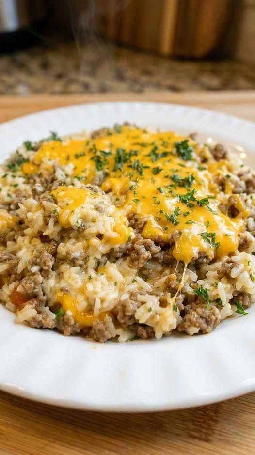 Tento recept som objavila večer, keď som mala málo času a chladnička bola takmer prázdna. S mletým hovädzím mäsom, zvyškami ryže a niekoľkými polievkami z konzervy bol kastról hotový za menej ako hodinu – a okamžite sa stal obľúbeným jedlom v rodine. Je cenovo dostupný, sýty a nekonečne prispôsobivý – je to jeden z tých receptov, ktoré budete robiť znova a znova.