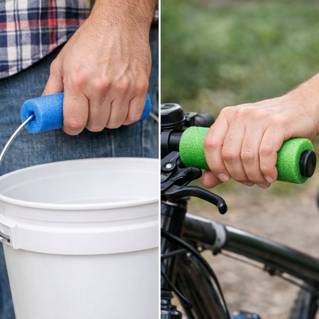 Pre predmety, ktoré potrebujú mäkší dotyk, vám bazénové rezance poskytnú potrebné odpruženie. Pre pohodlnejšie nosenie pozdĺžne nakrájajte rezance a omotajte ich okolo rukovätí vedra. Pre väčšie pohodlie pri dlhých jazdách nakrájajte rezance na požadovanú veľkosť a upevnite ich cez rukoväť. Vďaka poddajnosti peny sa prispôsobia rôznym tvarom, čím sa zabezpečí individuálne prispôsobenie, ktoré znižuje namáhanie rúk.