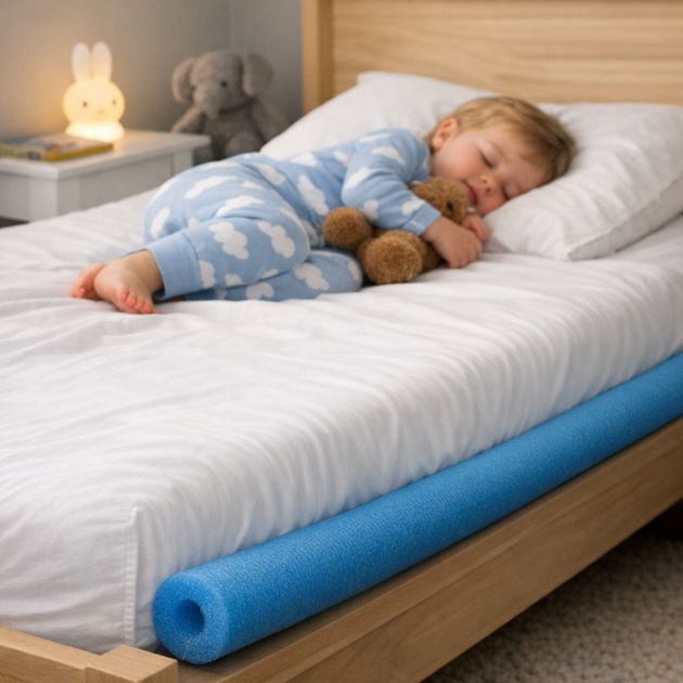 Prechod batoliat z postieľok do postieľok môže byť zložitý, najmä kvôli strachu z pádov. Ak chcete vytvoriť mäkkú bariéru, umiestnite pod napínaciu plachtu na okraj matraca bazénovú podložku. Podložka slúži ako jemná pripomienka pre deti, aby sa držali ďalej od okraja. Keďže bazénové podložky majú priemer približne 6 až 7,5 cm, poskytujú dostatočnú bariéru bez toho, aby boli nepohodlné. Tento trik je nielen cenovo dostupný, ale sa tiež ľahko inštaluje a odstraňuje podľa potreby.