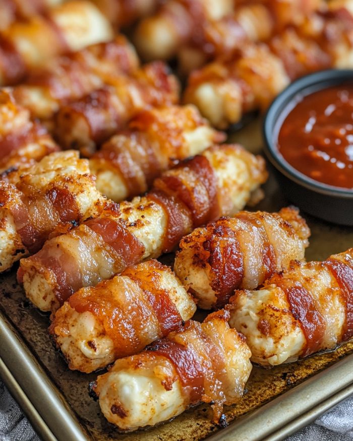 V srdci Stredozápadu, kde sa polia tiahnu kam až oko dovidí a vzduch je naplnený upokojujúcou vôňou domácich jedál, nachádzame inšpiráciu pre naše jedlá v tých najjednoduchších ingredienciách. Tento recept na nízkosacharidové mozzarellové tyčinky z Nashvillu obalené slaninou je lahodnou variáciou na obľúbenú klasickú pochúťku. Spája ohnivého ducha pikantného kurčaťa z Nashvillu s upokojujúcim, dymovým objatím slaniny, to všetko obalené okolo lepkavej mozzarelly. Je to jedlo, ktoré spája to najlepšie z oboch svetov, ideálne pre tých, ktorí si chcú dopriať jedlo bez sacharidov. Či už organizujete rodinné stretnutie alebo si chcete jednoducho dopriať niečo špeciálne, tieto mozzarellové tyčinky vám určite vyčaria úsmev na tvári.