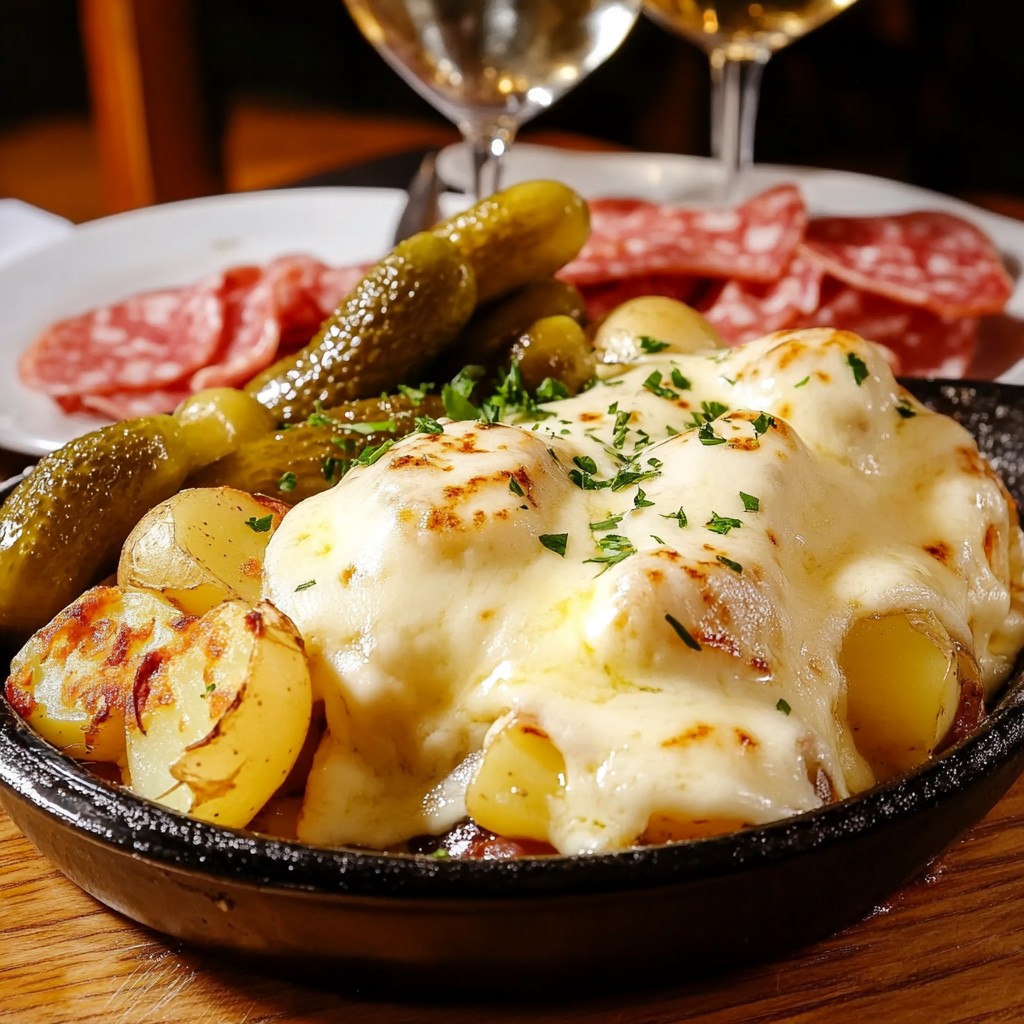 Čas varenia: 30 min Ingrediencie 600 g zemiakov (odroda Charlotte alebo Amandine) 300 g syra raklet (nakrájaného) 120 g údenín (saláma, rozeta alebo ekvivalent) 120 g kyslých uhoriek 80 g nakladanej cibule 5 g čerstvej petržlenovej vňate 5 g soli 2 g korenia Postup prípravy