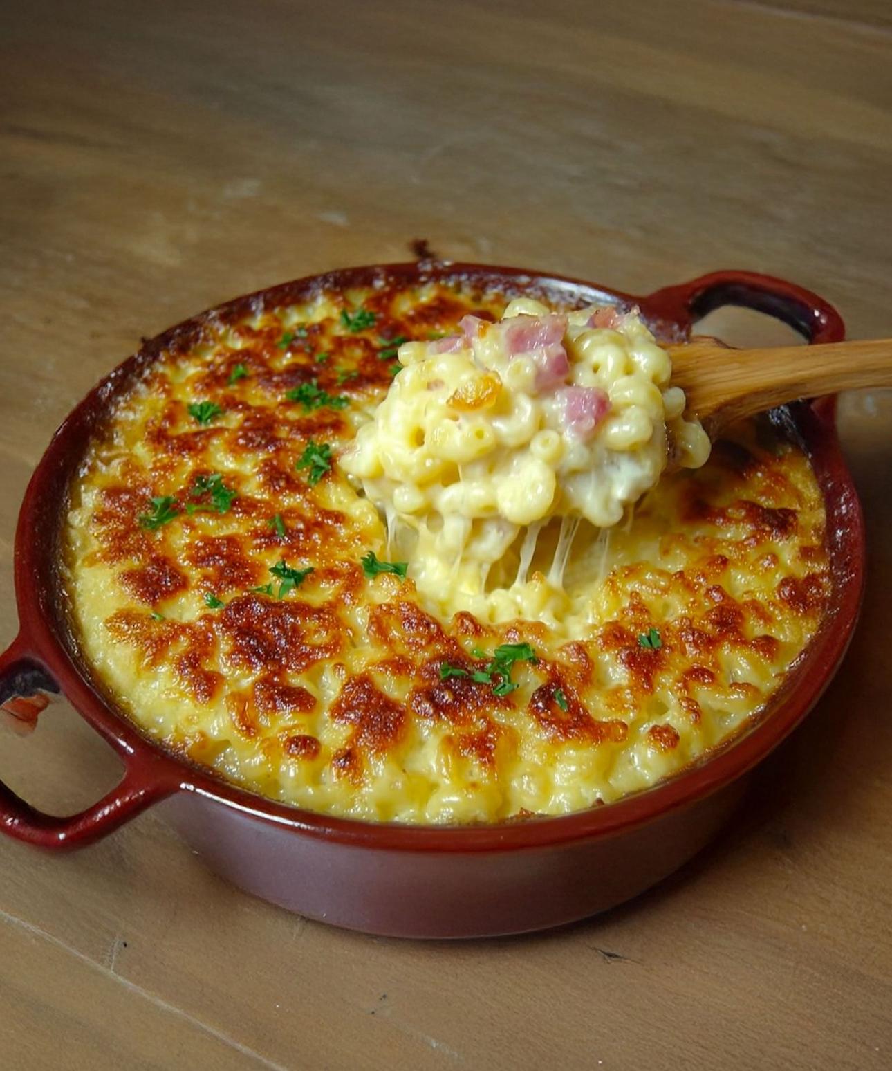 V tejto ultra-luxusnej verzii sa pôžitok posúva na vyššiu úroveň: jemná smotana, plnotučné mlieko pre sladkosť, veľké množstvo roztopeného syra a nakrájaná šunka pre dokonalú rovnováhu medzi krémovosťou a slanými chuťami. Je to typ jedla, ktoré si zamiluje každý pri stole, bez akýchkoľvek starostí a komplikácií.