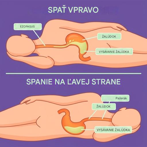 Keď ležíte na pravom boku, zmení sa usporiadanie vašich vnútorných orgánov. Váš žalúdok a pažerák už nie sú v rovnakej polohe, ako keby ste ležali na ľavom boku.