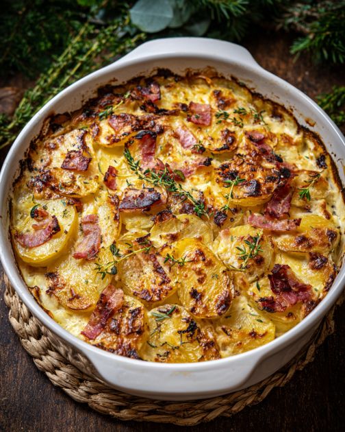 Zapekaná slanina a zemiaky je chutné jedlo, ktoré kombinuje bohatú chuť chrumkavej slaniny s krémovou textúrou zemiakov. Toto jedlo má korene v tradičnej americkej kuchyni a často sa podáva ako výdatné jedlo počas rodinných stretnutí alebo spoločných večierkov. Je to všestranné jedlo, ktoré sa dá prispôsobiť rôznym chutiam, vďaka čomu je obľúbené u tých, ktorí radi experimentujú v kuchyni. Kombinácia pikantnej slaniny, jemných zemiakov a lahodnej smotanovej omáčky robí z tohto zapekaného jedla uspokojivú voľbu pre každú príležitosť.