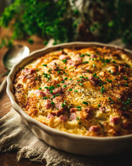 Tento zapekaný zemiakový placku so šunkou a syrom je obľúbeným jedlom, ktoré ma pripomína nedeľné brunche na farme mojej starej mamy, zasadenej do zvlnených polí nášho stredozápadu. Je to výdatné a upokojujúce jedlo, ktoré spája rustikálnu jednoduchosť zemiakových placiek, pikantnú bohatosť šunky a krémovú chuť roztaveného syra. Toto jedlo je ideálne na rodinné stretnutia, spoločné večierky alebo kedykoľvek, keď chcete naplniť svoju kuchyňu teplými a lákavými vôňami domáceho jedla. Je to recept, ktorý sa odovzdával z generácie na generáciu, pričom každá generácia robila malé úpravy, aby vyhovovala chuti svojej rodiny, pričom si stále ctila svoj pôvod.