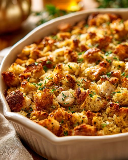 Tento kastról je bohatý a chutný, preto ho rada kombinujem s ľahšími, sviežejšími prílohami pre vyváženie. Jednoduchý zelený šalát s výraznou vinaigrette pekne premieša krémovosť, alebo môžete podávať dusenú zelenú fazuľku, pečenú brokolicu alebo restovanú cuketu. Ak sa chcete prikloniť ku klasickému profilu komfortného jedla, pridajte brusnicovú omáčku alebo pečenú mrkvu pre nádych sladkosti a farby. Pre výdatnejší tanier poukladajte kastról na lôžko z dusenej ryže alebo podávajte s teplými žemľami, aby nasiakli prebytočnú omáčku.